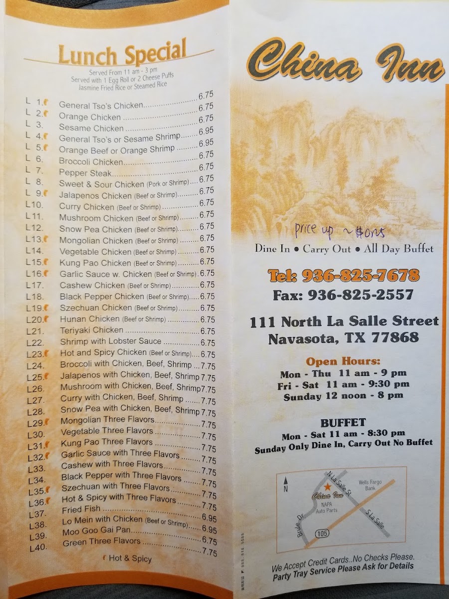 Welcome to China Inn - Navasota, a hidden gem located at 111 N Lasalle St, Navasota, TX. This cozy spot brings the true flavors of Chinese cuisine to life with an extensive menu tailored to delight every palate.